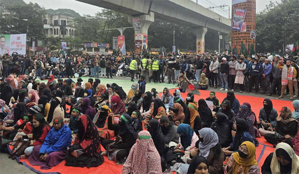 শহীদ শরিফ ওসমান হাদির হত্যার বিচার দাবিতে টানা চতুর্থ দিনের মতো রাজধানীর শাহবাগ মোড় অবরোধ করে অবস্থান কর্মসূচি পালন করছে