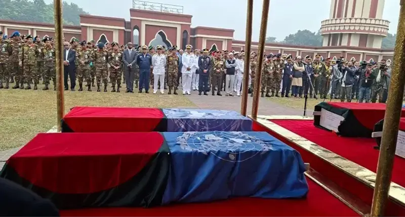 সুদানে ড্রোন হামলায় নিহত ৬ বাংলাদেশি শান্তিরক্ষীর রাষ্ট্রীয় সম্মানে জানাজা সম্পন্ন